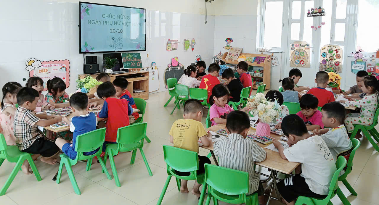 Dưới đây là một số hình ảnh của các bé lớp 4 tuổi B8 trường mầm non Hồng Phong hoạt động làm bưu thiệp.