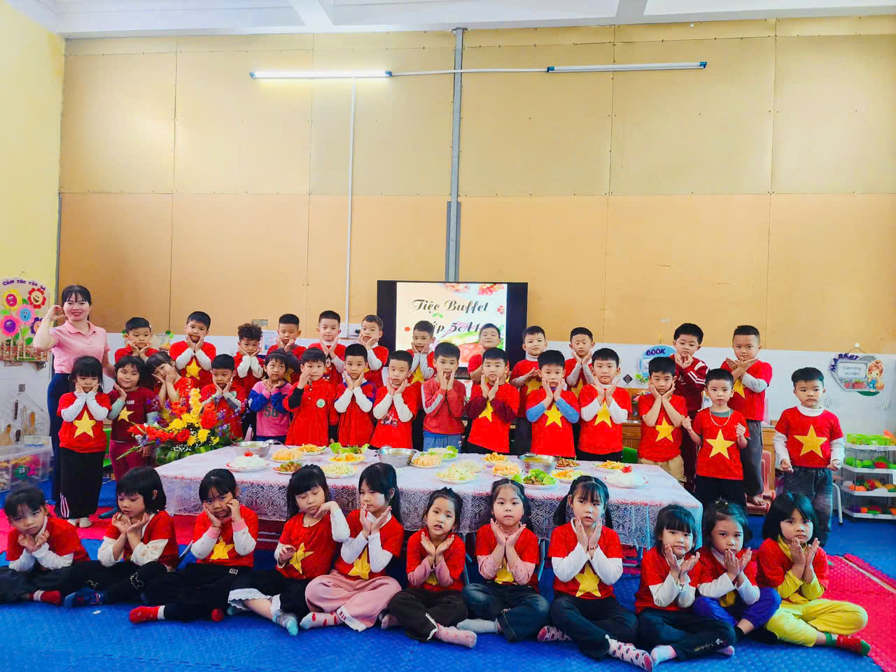 Trong không khí hân hoan của những ngày đầu xuân năm mới, cô và các bé lớp 5A1 đã cùng nhau chuẩn bị và bày trí một bàn tiệc Buffet tháng Ba thật rộn ràng và ý nghĩa. Không gian lớp học như bừng sáng bởi sự xuất hiện của những bàn tiệc đầy màu sắc sinh động, là thành quả từ đôi bàn tay khéo léo và sự nhiệt huyết của cả cô lẫn bé. Nổi bật giữa bàn tiệc là món cơm rang thập cẩm vàng ruộm, xen lẫn màu xanh của đậu Hà Lan và đỏ tươi của cà rốt, bên cạnh những viên thịt chiên thơm lừng, giòn rụm – những món ăn không chỉ giàu dinh dưỡng mà còn vô cùng hấp dẫn vị giác. Từng khay hoa quả, salad tươi ngon được bày trí bắt mắt như gói trọn cả sắc xuân vào bữa tiệc. Tiếng cười nói giòn tan hòa cùng niềm vui thưởng thức!