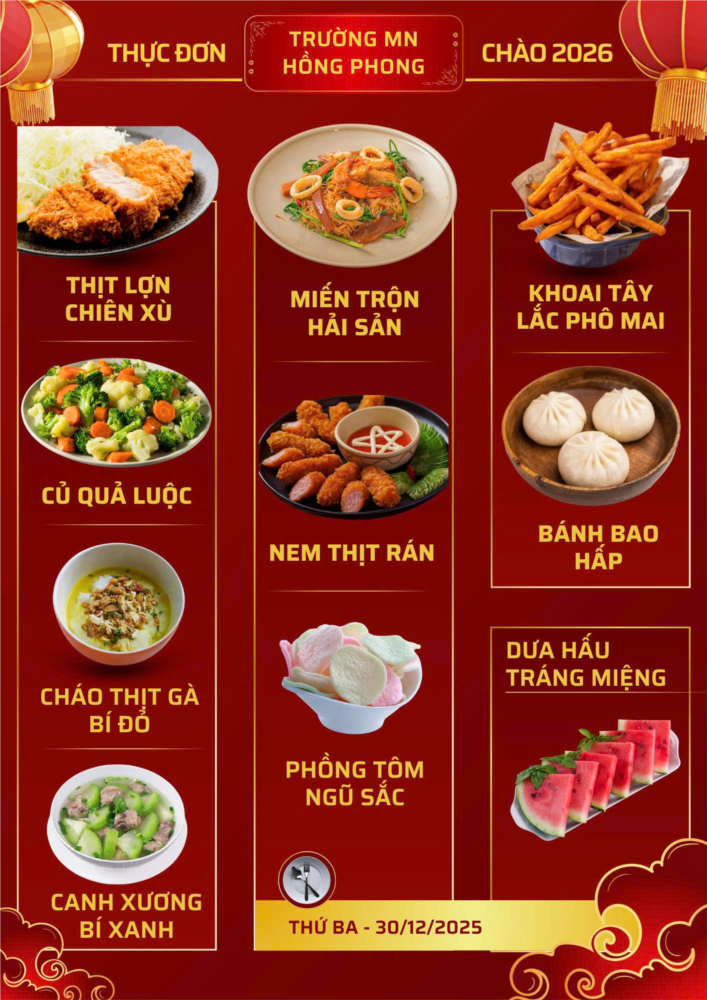 Ngày 30/12/2025, Trường Mầm non Hồng Phong đã tổ chức một buổi tiệc buffet đầy màu sắc và niềm vui dành cho các bé lớp 4 tuổi B8. Đây là hoạt động thiết thực nằm trong chuỗi các sự kiện giáo dục của nhà trường, nhằm mang đến cho các con những trải nghiệm sinh hoạt tập thể thú vị và bổ ích.
