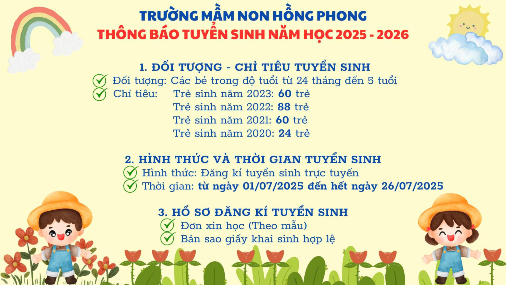 1. Đối tượng tuyển sinh: Trẻ từ đủ 24 tháng đến 5 tuổi sinh sống trên địa bàn phường Hồng Phong