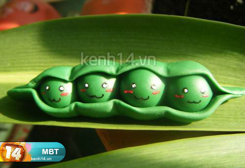 - Giờ thì cán mỏng phần đất sét xanh lá còn lại để làm phần vỏ ngoài của các bé đậu nè.