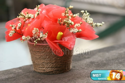 Chậu hoa của mình làm từ hộp caramel nên bé xíu.