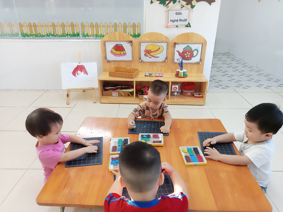 Hoạt động tạo hình ở lứa tuổi 24-36 tháng là bước đầu cho trẻ làm quen với hình, đường nét, màu sắc đơn giản. Ở lứa tuổi này chủ yếu là hoạt động vui chơi trẻ được khám phá, thích thú, sáng tạo và được lựa chọn các nguyên học liệu để thể hiện tùy theo ý muốn, qua đó trẻ được học và phát triển những kỹ năng cơ bản như: Trẻ được tô, dán, in, nặn,chắp ghép, xếp dán, chơi với màu nước... bằng sự tưởng tượng của chính mình. Hoạt động tạo hình còn giúp trẻ mầm non được tiếp cận một cách tích cực với thế giới xung quanh mà còn là cơ hội để trẻ thể hiện tình cảm của mình.