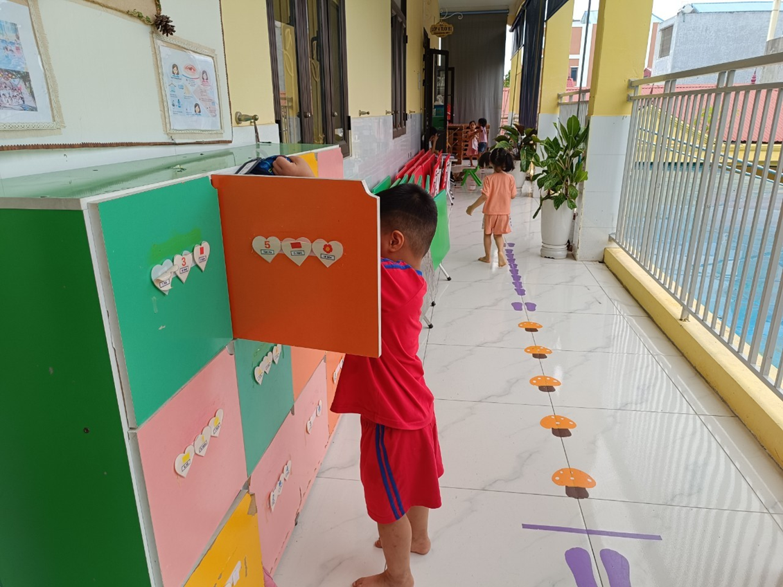 Trẻ đến lớp cất đồ dùng cá nhân đúng tủ cá nhân