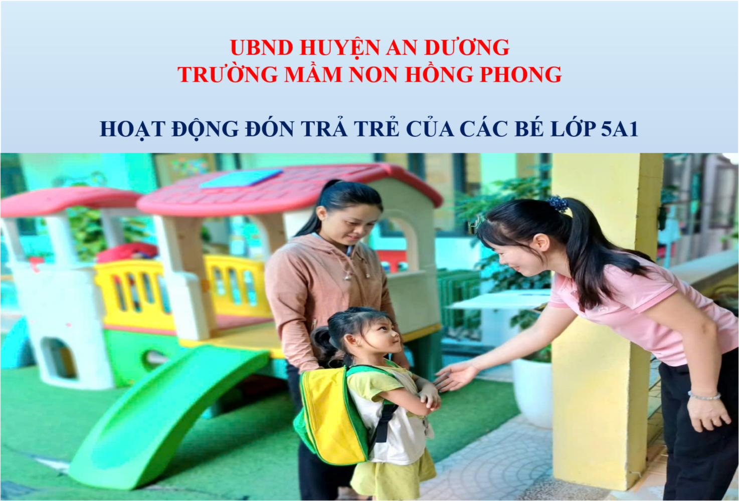 Sau đây là một số hình ảnh trong giờ đón, trả trẻ của lớp 5 tuổi A1 - trường mầm non Hồng Phong.