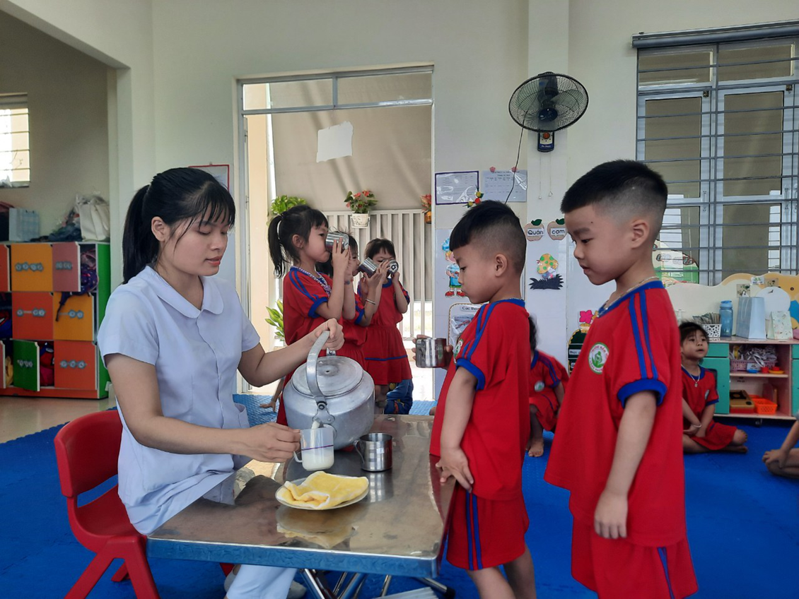 Hàng ngày các bé ở trường từ 7 giờ sáng đến 17 giờ chiều. Trong suốt thời gian này bé được các cô giáo chăm sóc và tổ chức các hoạt động học tập, vui chơi, rèn nề nếp một cách nhịp nhàng, phù hợp, đảm bảo đúng theo chương trình giáo dục mầm non. Ở trường trẻ sẽ được rèn khả năng phát triển, hình thành các kỹ năng sống, phát triển thể chất, phát triển nhận thức, phát triển ngôn ngữ, phát triển thẩm mỹ, phát triển tình cảm và kỹ năng xã hội. Và đây là một số hình ảnh các hoạt động trong ngày của bé: