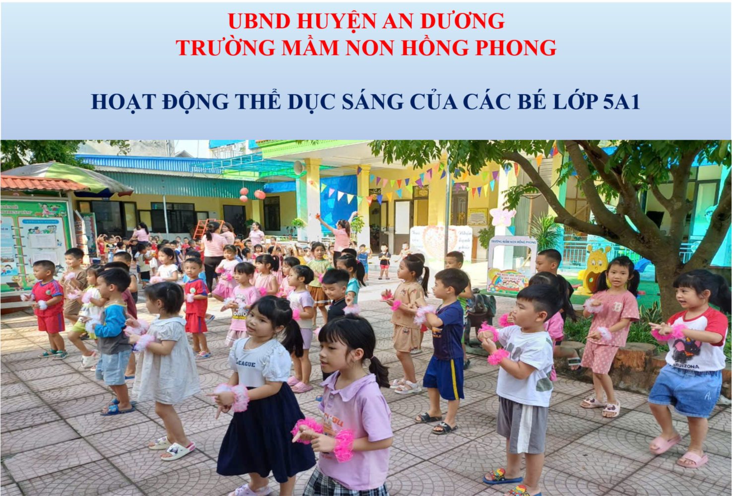 Cùng tập thể dục sáng với các bé lớp 5 tuổi A1 trường mầm non Hồng Phong nào!