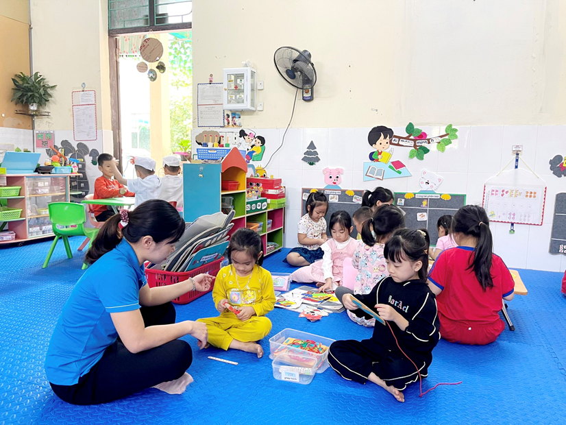 Hình ảnh: Cô hướng dẫn các bé chơi ở góc học tập