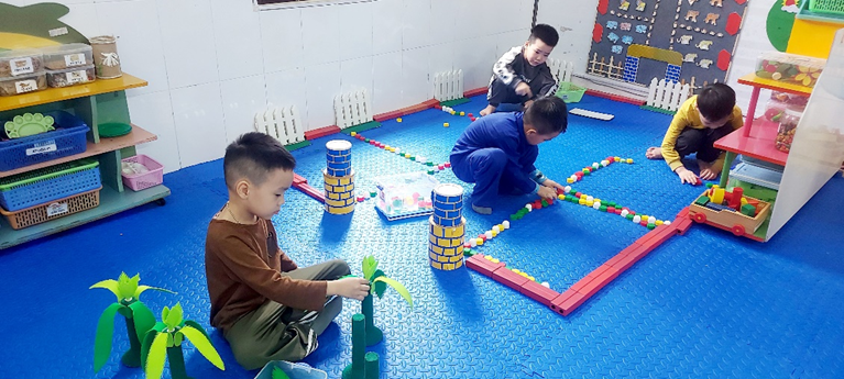 Hình ảnh: Các bé chơi ở góc xây dựng