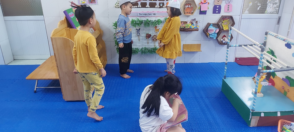 Hình ảnh:Các bé chơi ở góc thư viện