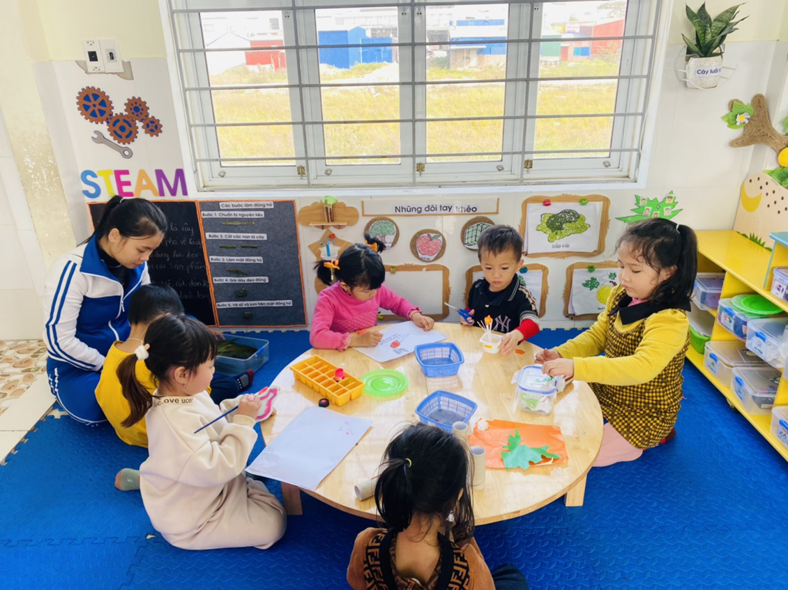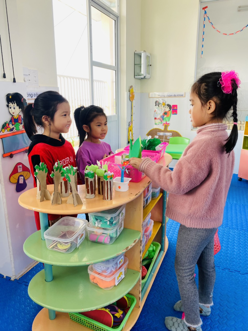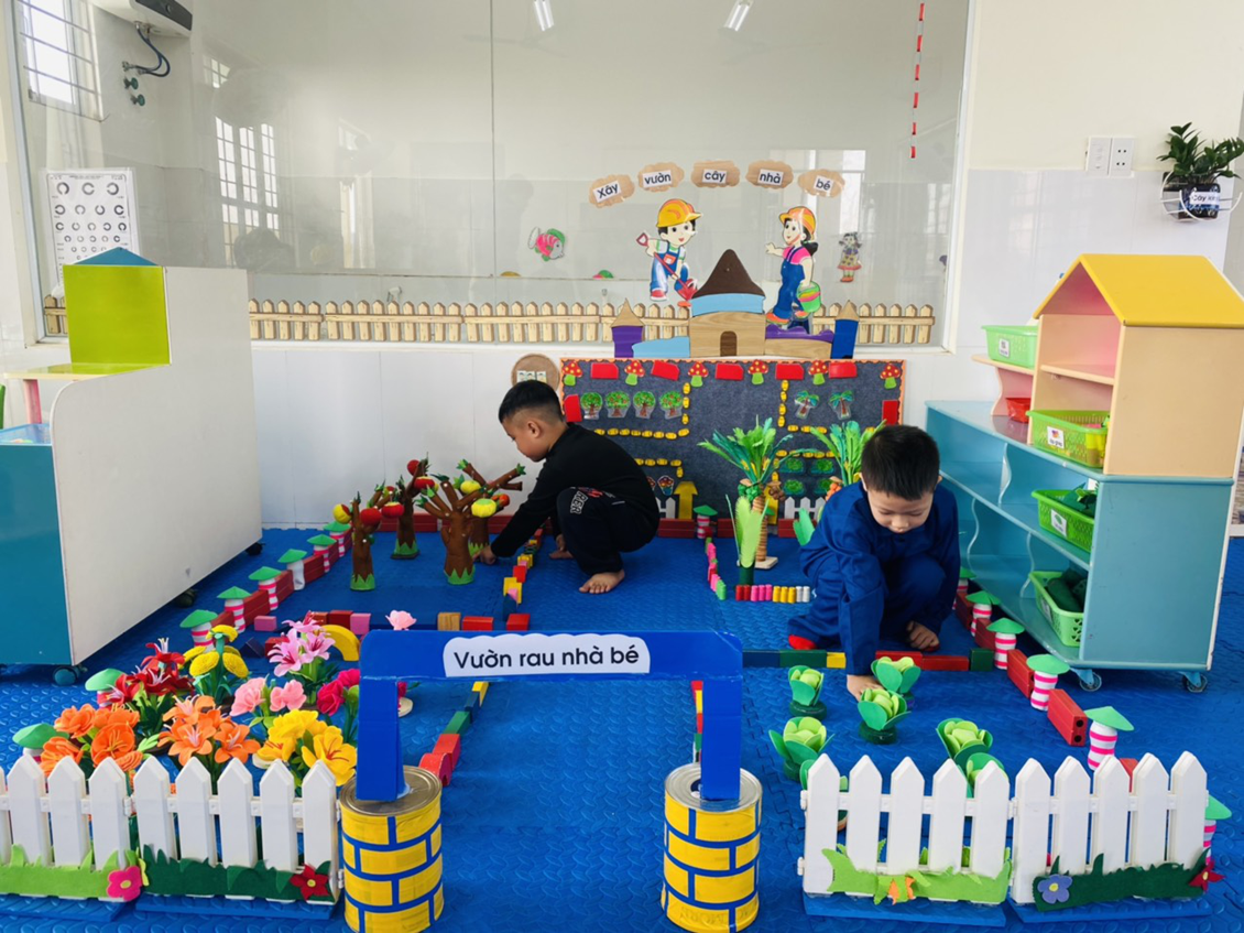 Hoạt động vui chơi - hay còn gọi là trò chơi đóng vai theo chủ đề - là hoạt động chủ đạo của trẻ mẫu giáo, nó quyết định sự hình thành và phát triển tâm lý - nhân cách của đứa trẻ. Hoạt động vui chơi còn là phương tiện giáo dục và phát triển toàn diện cho trẻ về trí tuệ, đạo đức, thẩm mỹ và ngôn ngữ. Ở lứa tuổi mầm non trẻ học qua chơi - trẻ chơi mà học, nên giáo viên cần chú trọng đến hoạt động này để trẻ được vui chơi, hoạt động và được trải nghiệm để thỏa mãn nhu cầu vui chơi. Và sau đây là một số hình ảnh trong hoạt động góc của các bé khi tham gia chơi góc