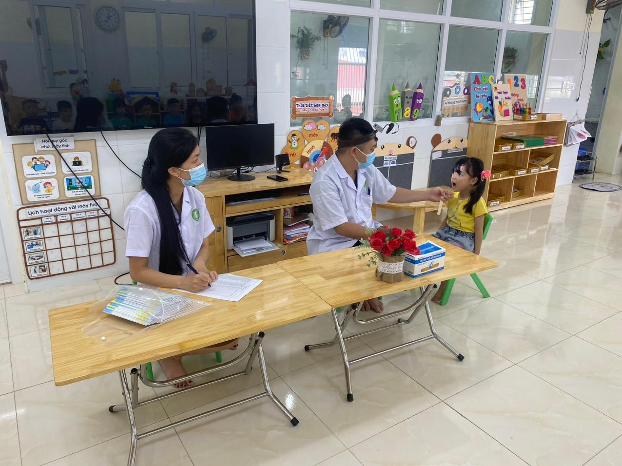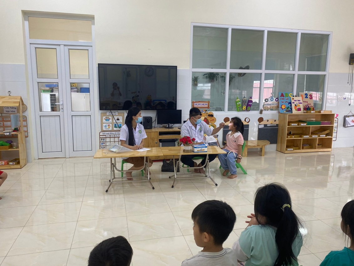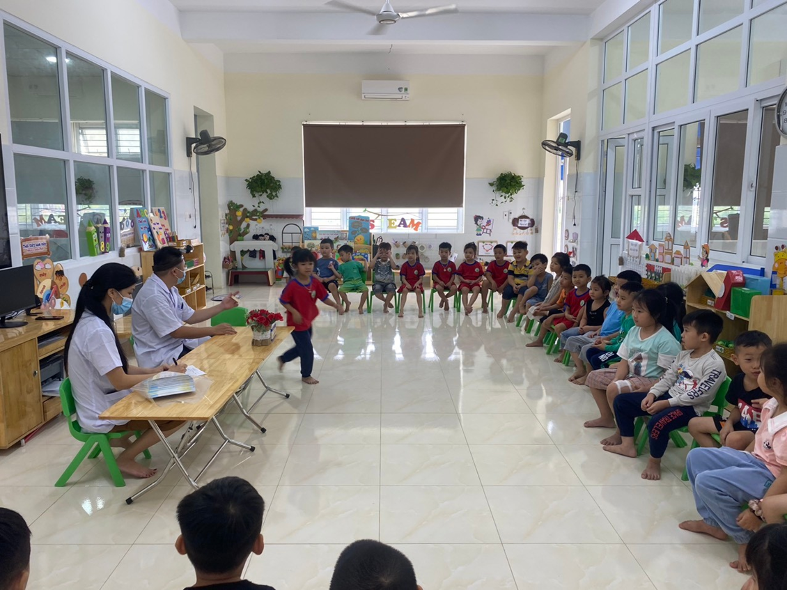 Sau đây là một số hình ảnh khám sức khỏe định kì tại lớp 5A3 trường mầm non Hồng Phong.