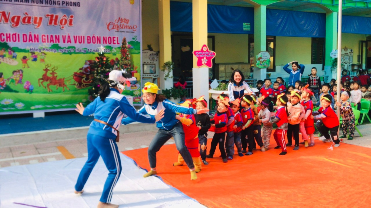 Các bé khối mẫu giáo 3 tuổi tham gia ngày hội “Bé với các trò chơi dân gian” với các phần thi sau: