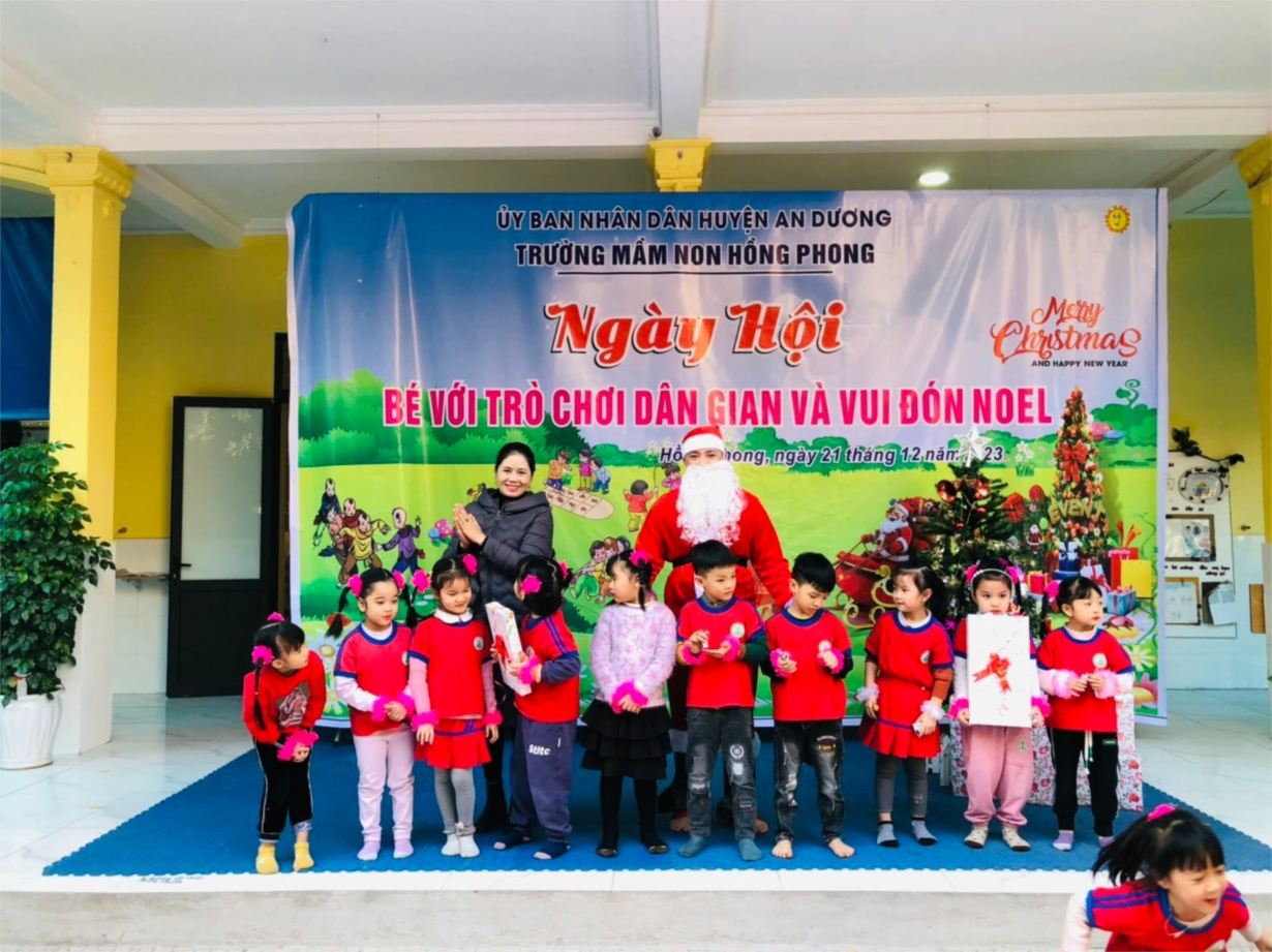 Hòa trong không khí vui tươi của cả nước chào mừng Ngày hội Quốc phòng toàn dân 22/12, trường mầm non Hồng Phong tưng bừng tổ chức Ngày hội “Bé với trò chơi dân gian và vui đón Noel”. Các trò chơi: Cướp cờ, Kéo co, Ném còn, Đua thuyền, Cáo và gà… được tổ chức hấp dẫn, thu hút trẻ. Các bé hào hứng chơi các trò chơi, tham gia chơi nhiệt tình. Và cuối buổi chơi, các bé vô cùng thích thú với sự xuất hiện của ông già Noel.