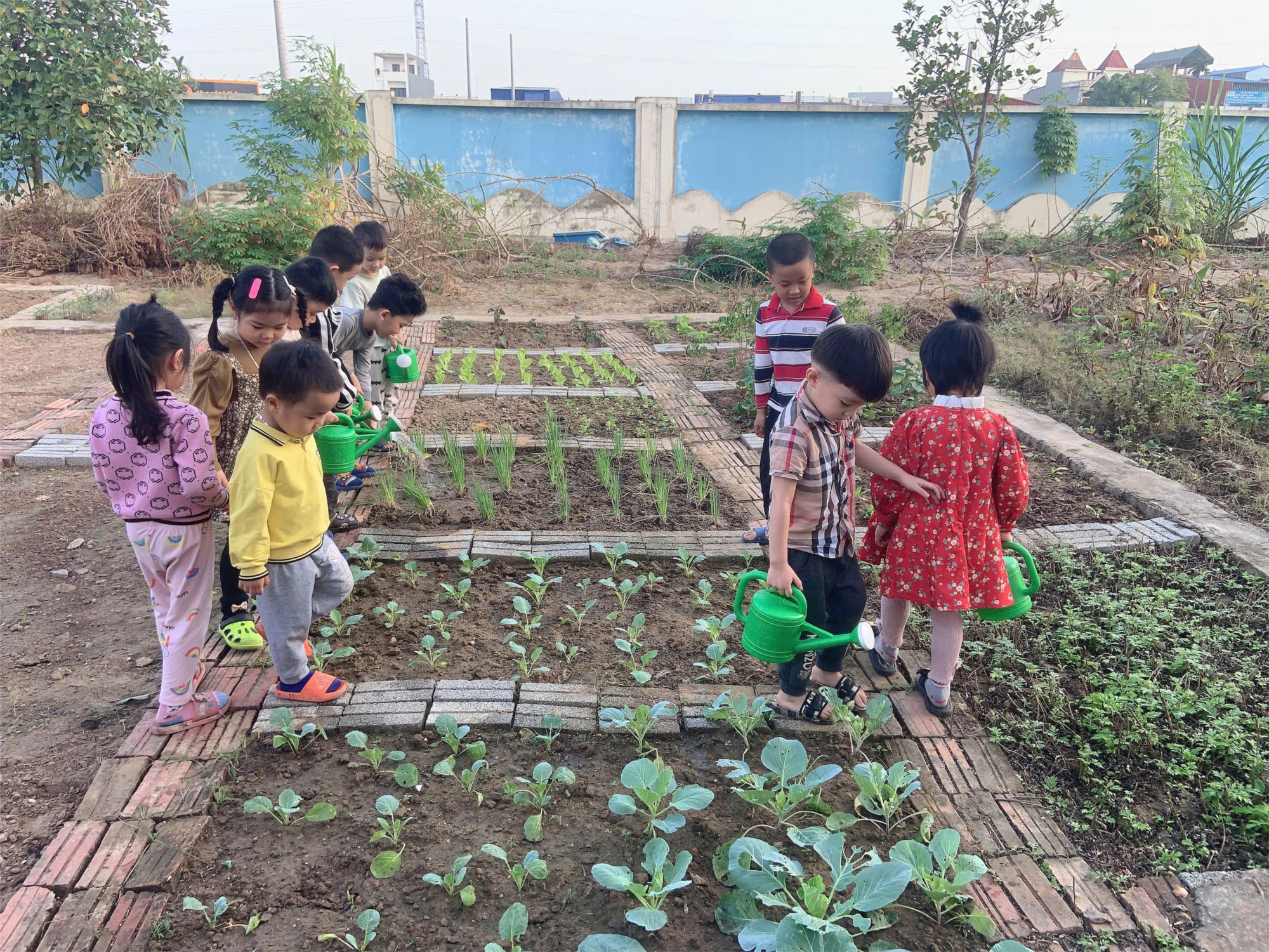 Mỗi hoạt động trải nghiệm thực tế cũng đều hướng đến mục đích trang bị kiến thức, rèn luyện kỹ năng sống, góp phần hình thành nhân cách cho trẻ, nhà trường đã chuẩn bị đầy đủ các điều kiện để các lớp có những buổi trải nghiệm vui - khỏe - an toàn. Bên cạnh những hoạt động khám phá, tìm hiểu tổ chức trong lớp học, hiện nay những hoạt động lên lớp của giáo viên đã có nhiều thay đổi, linh hoạt và phong phú hơn. Trẻ được học ngay tại sân trường, khám phá những hiện tượng về nước, sỏi, cát, gieo hạt và chăm sóc vườn rau, để cho trẻ được học qua chơi, trẻ được thực hành, quan sát mình làm, bạn làm.