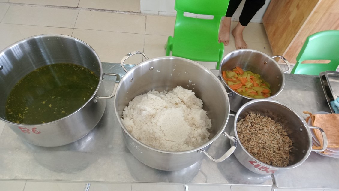 Một bữa ăn được sắp xếp khoa học, đầy đủ chất dinh dưỡng không những giúp cho trẻ có đủ năng lượng cho một ngày học tập và vui chơi mà nó còn được xem là “chiếc chìa khoá vàng” cho sự phát triển toàn diện cả về thể chất lẫn tinh thần cho trẻ. Thông qua bữa ăn trưa, trẻ được bù đắp những năng lượng đã bị tiêu hao và cung cấp năng lượng mới để tham gia vào các hoạt động tiếp theo. Vì vậy việc tổ chứa bữa ăn cho trẻ ở trường mầm non là một trong những nhiệm vụ quan trọng trong quá trình chăm sóc- nuôi dưỡng- giáo dục trẻ. Dưới đây là hình ảnh bữa ăn trưa của trẻ lớp 4B6 trường mầm non Hồng Phong.
