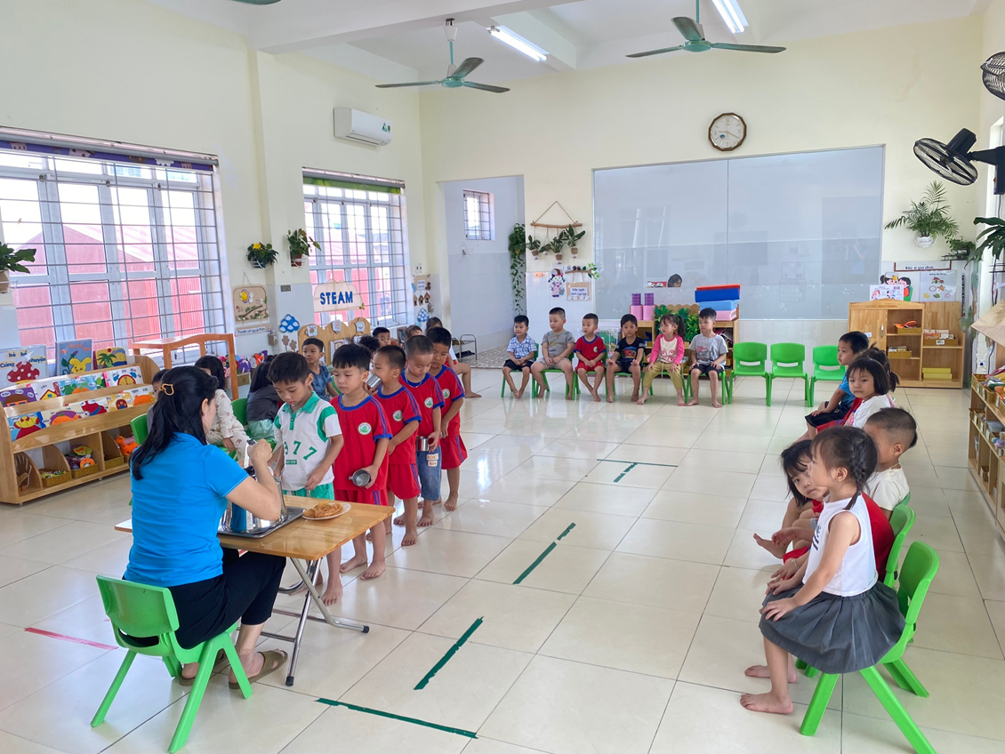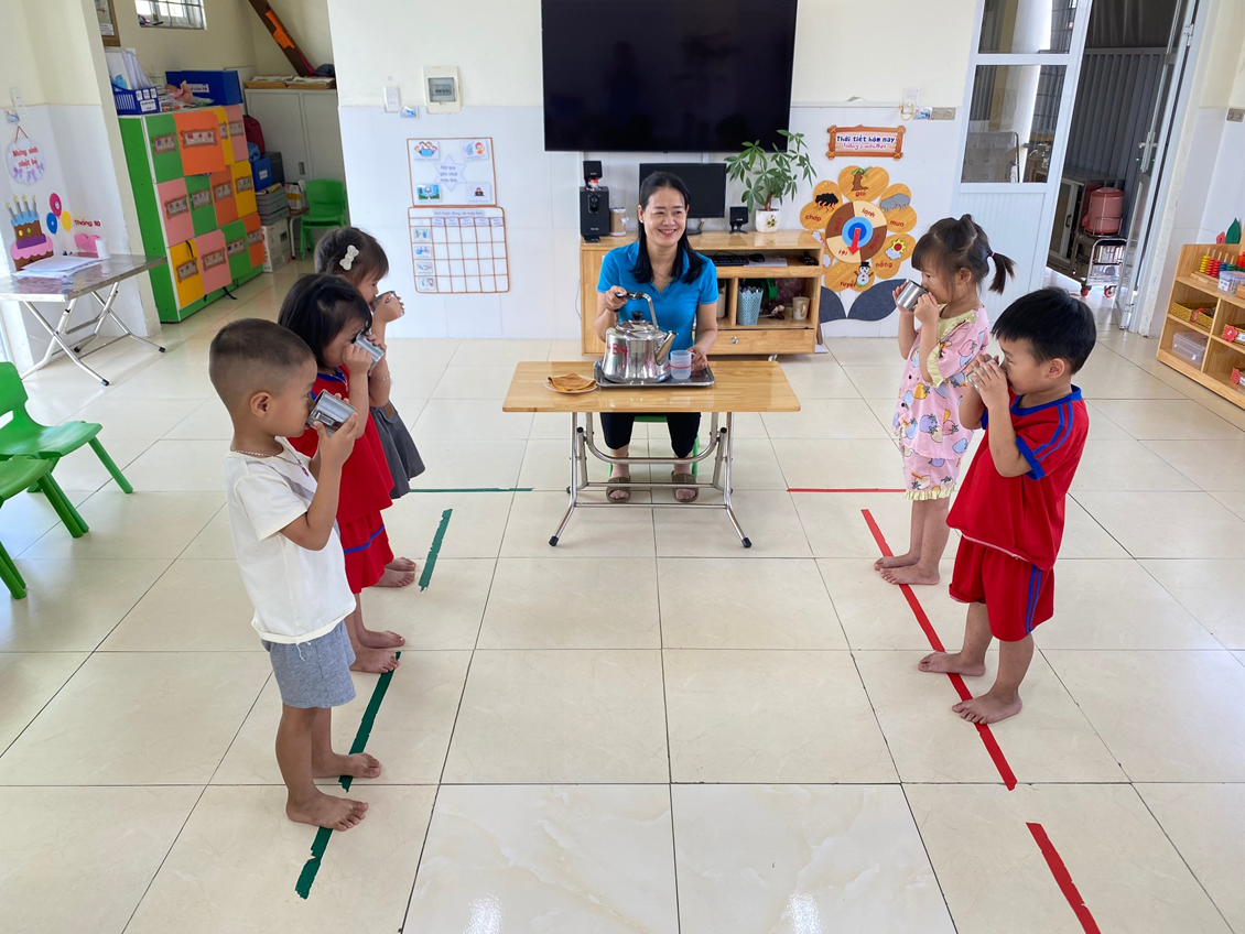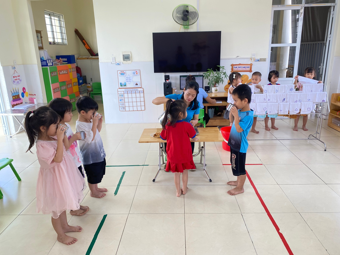 Giờ uống sữa lớp 4B4 trường mầm non Hồng Phong