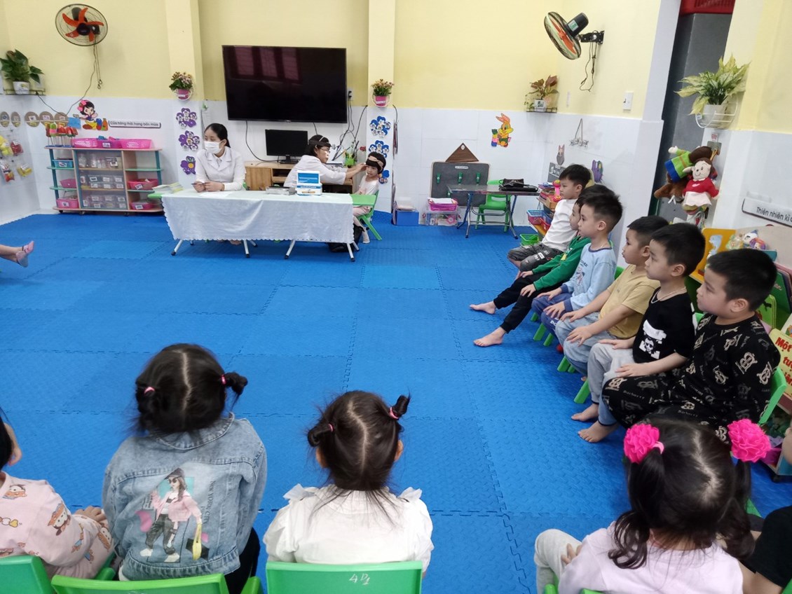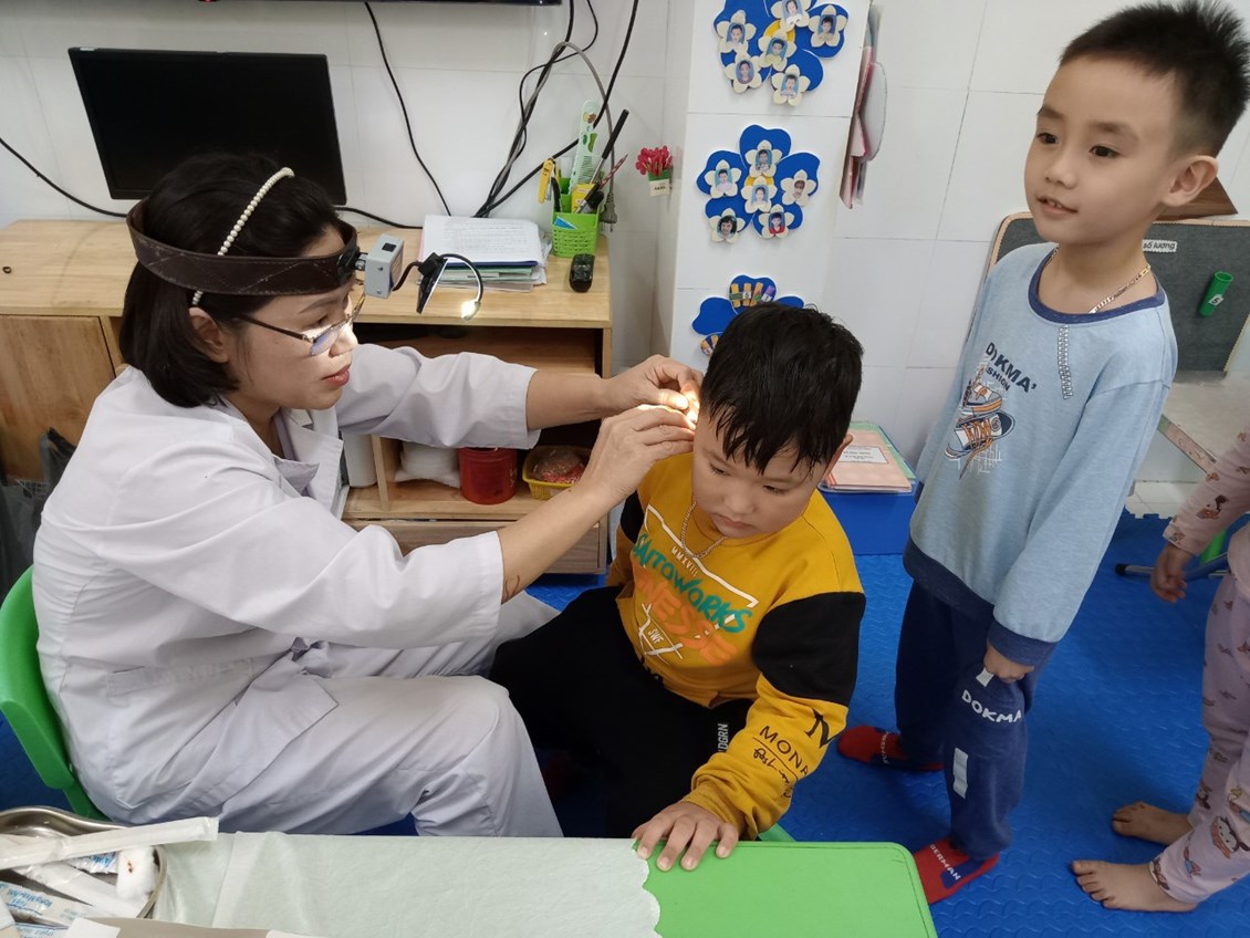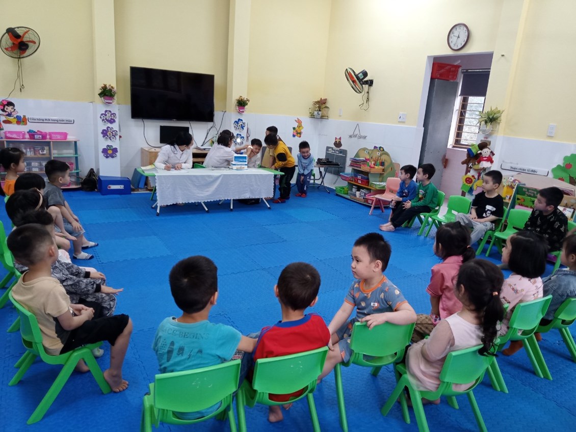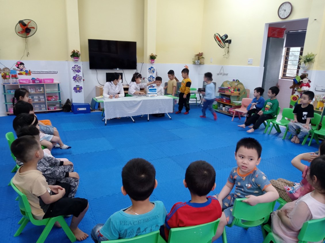 Khi đi học mầm non, trẻ sẽ tiếp xúc nhiều với các vật dụng công cộng, kết hợp với hệ miễn dịch của trẻ vẫn còn yếu, dễ mắc các bệnh truyền nhiễm là điều khó tránh khỏi. Đặc biệt là trong điều kiện khí hậu nhiệt đới nóng ẩm ở Việt Nam, trẻ rất hay mắc các bệnh như: cảm cúm, ho, viêm họng, các bệnh về đường tiêu hóa…Bởi vậy nhà trường không chỉ quan tâm tới chế độ dinh dưỡng của trẻ, lớp 4B1 tổ chức cân đo cho trẻ 3 lần/ năm. Nhà trường, giáo viên phối hợp với trạm y tế xã Hồng Phong khám sức khỏe cho trẻ định kỳ 2 lần /năm. Khám sức khỏe cho trẻ mầm non giúp cho giáo viên, cha mẹ trẻ nắm rõ được sự phát triển của trẻ về chiều cao, cân nặng, thị lực, thính giác, hệ tiêu hóa hay các vấn đề liên quan tới đường hô hấp…từ đó xây dựng chế độ dinh dưỡng tốt hơn.