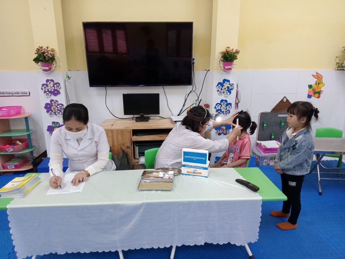 Trong các hoạt động của nhà trường, công tác chăm sóc sức khoẻ cho trẻ là một việc làm luôn được nhà trường đặc biệt quan tâm. Từ nhiều năm nay, việc tổ chức khám sức khoẻ định kỳ cho trẻ đã được nhà trường duy trì thành nề nếp thực hiện thường xuyên theo kế hoạch.