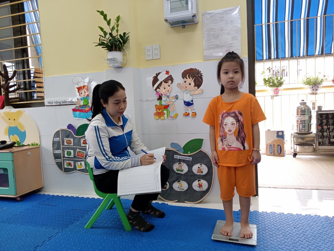 Trẻ được giáo viên kiểm tra cân nặng 1 năm 3 lần.