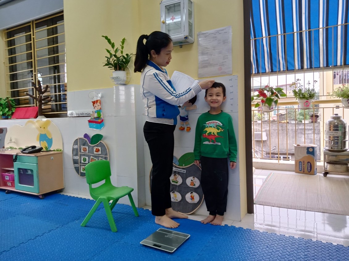 Trẻ được giáo viên đo chiều cao 1 năm 3 lần