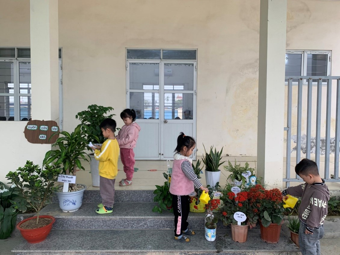 Lớp 4B5 thực hiện hoạt động ngoài trời.